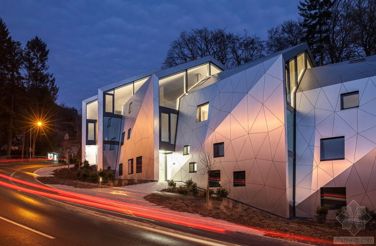 根據(jù)城市建筑規(guī)章條例規(guī)范,無論地形有多奇怪,都可以建造簡易的兩層單體建筑,并且?guī)в械叵率?。但是,周圍的環(huán)境、特殊的地形條件和基地的形式造就了各種各樣的建筑,與此同時(shí)也產(chǎn)生了上文所指出的問題?;匚挥谝粭l十分彎曲的街道邊緣;地形高差達(dá)10米,非常陡峭;基地上保留有樹齡300年的古樹,且被列為國家歷史文物。所有的這些狀況使建筑有了最初的形狀。此外,該建筑還呼應(yīng)了特殊的城市環(huán)境(一邊是小體量的住宅單元,而另一邊是大體量的公寓樓。)建筑師通過將主體分成六個(gè)小的、垂直位移的體塊,創(chuàng)造了一個(gè)巧妙地轉(zhuǎn)變。建筑通過這種方法適應(yīng)了環(huán)境,既保持了所需的密度,又賦予其歸屬感、特性和人性化。體塊的分割和位移需要謹(jǐn)慎地研究自然采光的需求、朝向城市景觀的開闊視野,并且創(chuàng)造天地之間的視覺連接,同時(shí)還要保護(hù)住戶的隱私。