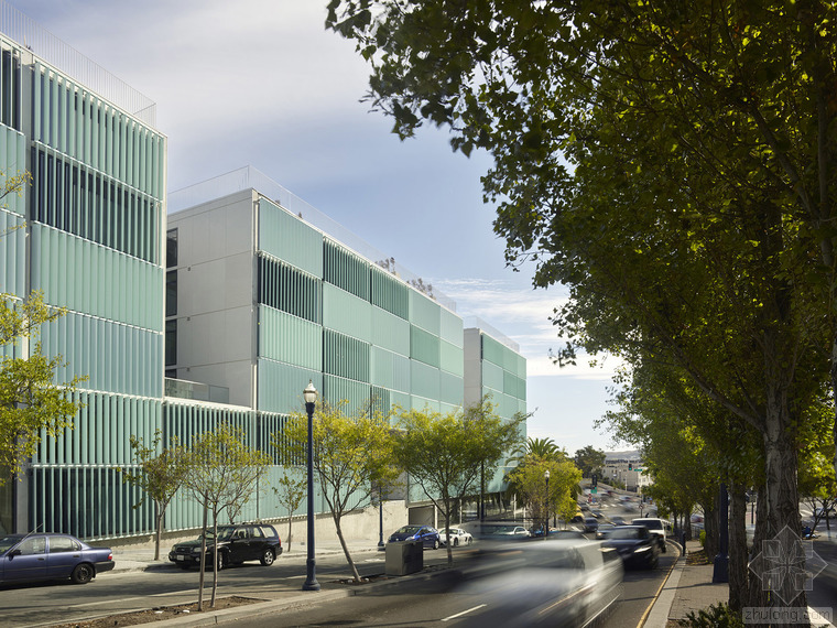 8 Octavia毗鄰101公路,成為進(jìn)入舊金山的地標(biāo)性建筑。由住戶(hù)自由操作的百葉窗,讓建筑立面展現(xiàn)出變化的形象。為了更有效的利用空間,建筑采用復(fù)式設(shè)計(jì),且每個(gè)單元中間包含一個(gè)中庭。建筑設(shè)備隱藏在墻壁內(nèi),為居住者提供足夠的可利用給空間。場(chǎng)地位于101公路與城市道路的連接處,這里也是舊金山西北區(qū)的入口。The First Baptist Church教堂的典型立面及顯著的檐口是這棟建筑的顯著標(biāo)志。與其相反的,在Octavia Boulevard大道的另一邊,8 Octavia完善了城市的入口景觀。這棟地標(biāo)性建筑以其傳統(tǒng)又創(chuàng)新的外貌,成為舊金山的新地標(biāo)。細(xì)長(zhǎng)的建筑體量在街道上延展,并在兩端形成商業(yè)區(qū)。傳統(tǒng)上的舊金山街道立面都較為精致,賦有精巧繁復(fù)的立面裝飾,除此之外,這些當(dāng)代建筑需用較低的能量消耗和較少的材料來(lái)滿(mǎn)足居住的需求。建筑外表皮需具備自我調(diào)節(jié)能力,隨著時(shí)間和季節(jié)的變化做出相應(yīng)改變,并適時(shí)的調(diào)整室內(nèi)環(huán)境氣候。在建筑的西立面,每一戶(hù)居住著都可以通過(guò)調(diào)整外立面百葉窗來(lái)控制自家的太陽(yáng)光照強(qiáng)度,噪音大小,并同時(shí)改變著外立面圖案。這種不統(tǒng)一的變化如同指示牌,不斷映射著居住者的生活狀態(tài)。