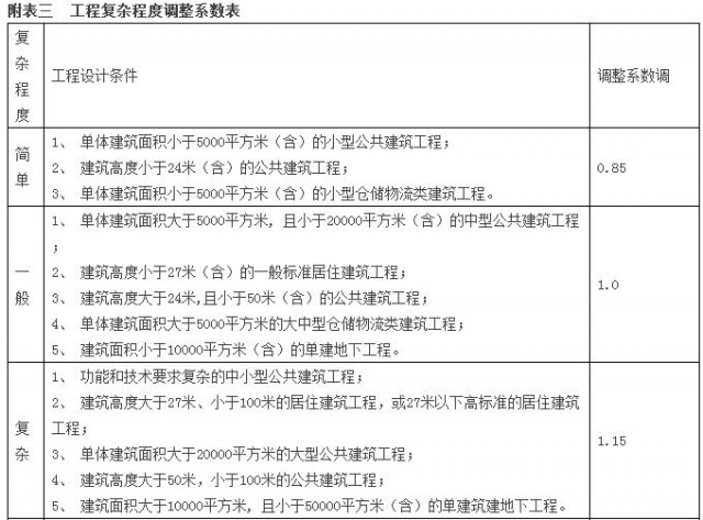 部分項(xiàng)目可采用單位建筑面積方式計(jì)費(fèi),詳見(jiàn)附表四《部分項(xiàng)目單位建筑面積計(jì)費(fèi)表》